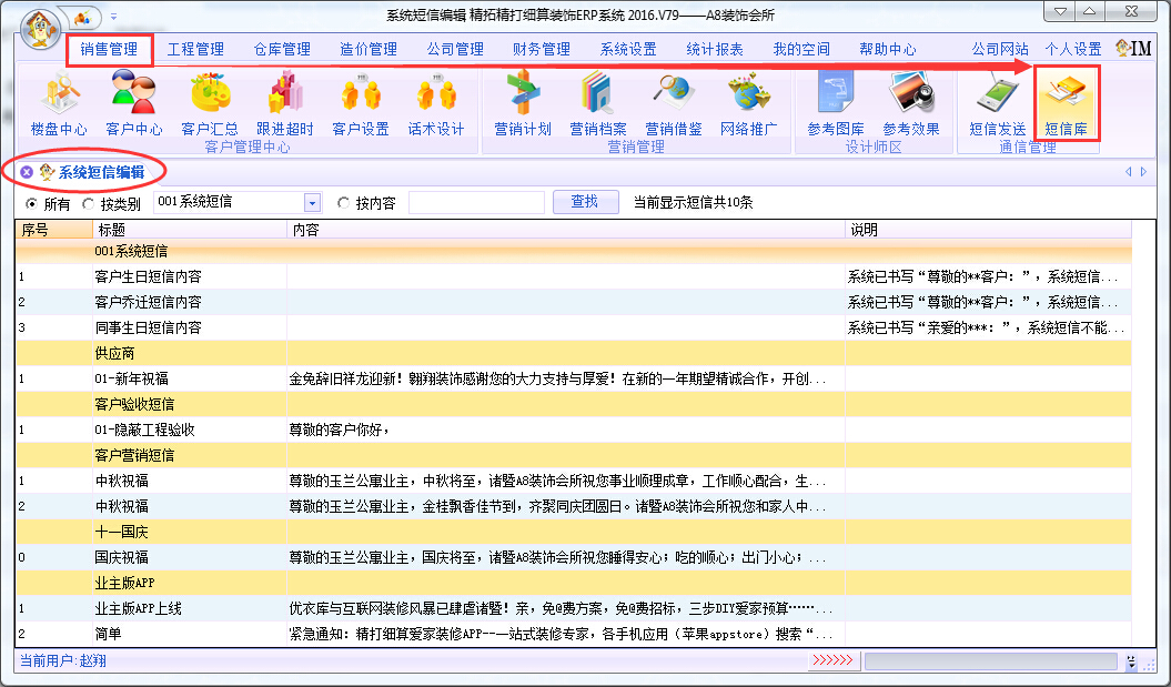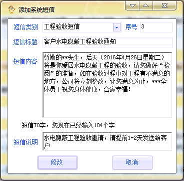 右鍵“修改系統(tǒng)短信”001系統(tǒng)短信是只能修改的,無(wú)法刪除,但是在啟用ERP的第一時(shí)間應(yīng)該要修改好這3個(gè)系統(tǒng)短信的內(nèi)容。