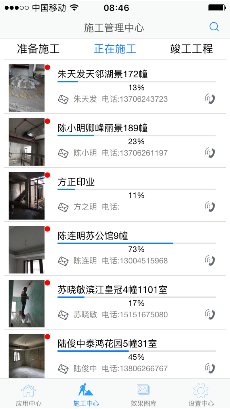 一、點(diǎn)底部施工中心,列表顯示所有工程